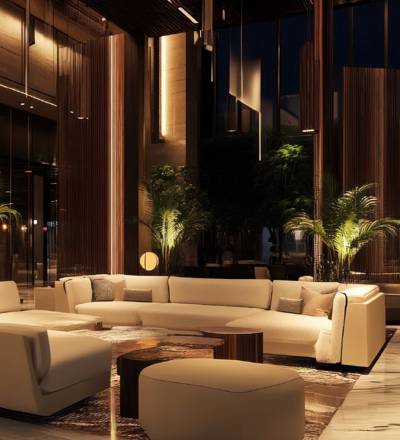 Step into sophistication at our exclusive GQ Lounge—an enclave spread over 10,000sqft where refined design meets effortless style. A statement in style and indulgence, it blends plush interiors, mood lighting, and top-shelf service. This is your space to unwind over a fine drink or simply soak in the ambience of curated luxury, all set against the prestige of a world-class golf address.